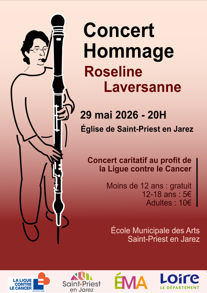 Concert hommage Roseline Laversanne au profit de la Ligue contre le cancer, donné par l’École Municipale des Arts de Saint-Priest en Jarez.