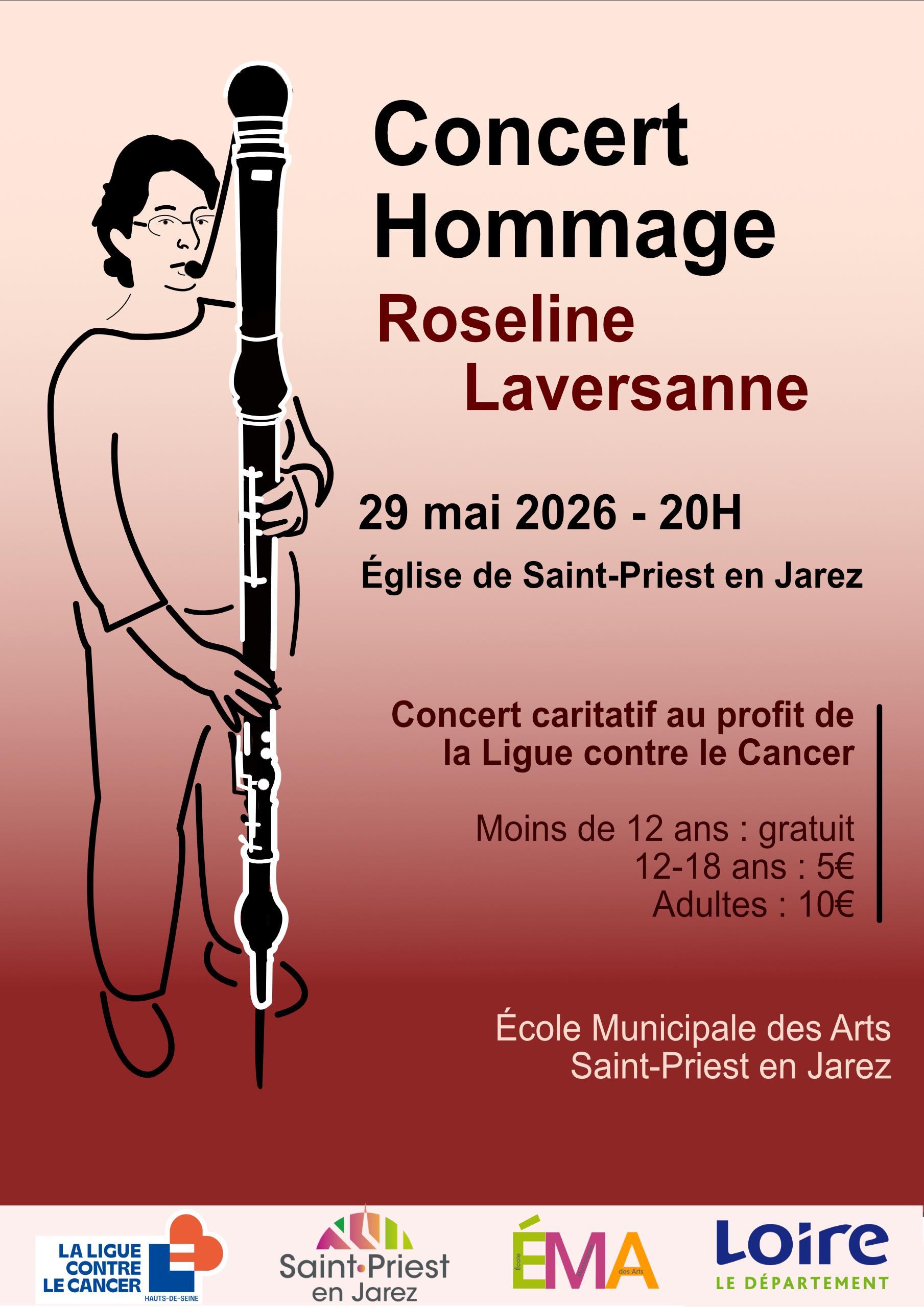 Concert hommage Roseline Laversanne au profit de la Ligue contre le cancer, donné par l’École Municipale des Arts de Saint-Priest en Jarez.